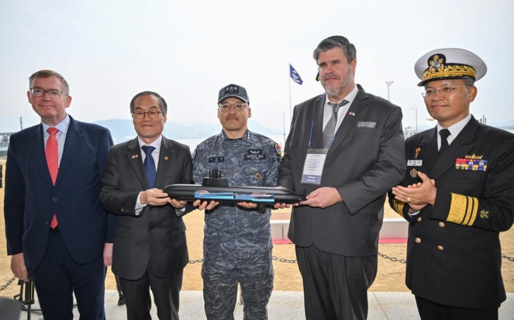The departure ceremony at Korea’s Submarine Command drew senior Korean defence officials and foreign representatives, including Canadian Ambassador Philippe Lafortune and UK Ambassador Colin Crooks. A seawater exchange ceremony was also held, with Korean seawater to be combined with Canadian seawater upon arrival.